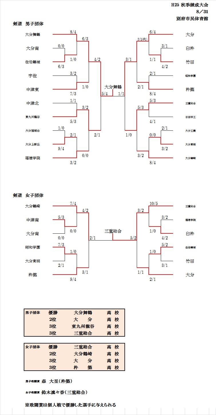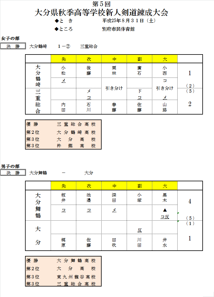 大分県高等学校 新人秋季錬成大会 結果