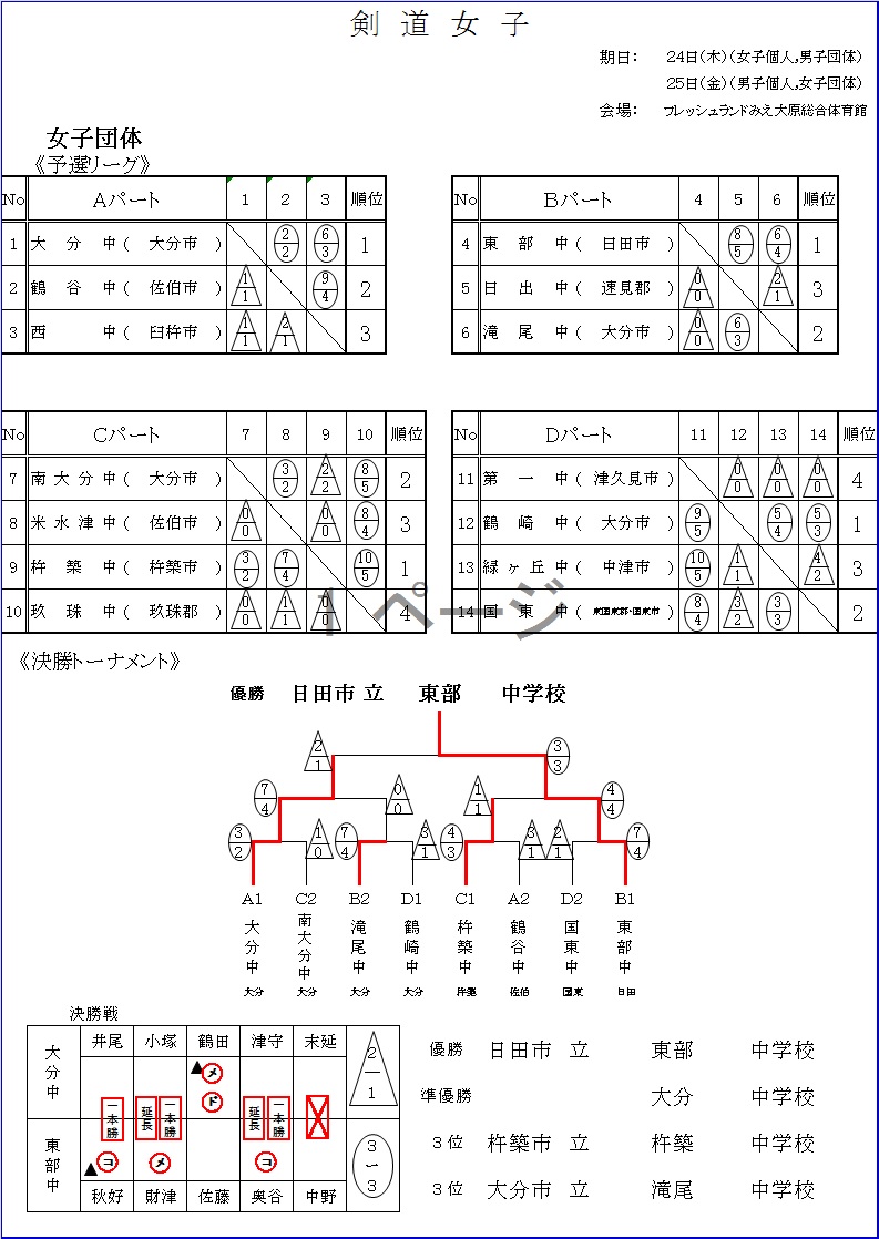 日田東部中学校 余裕の大分県女子団体チャンピオンへ